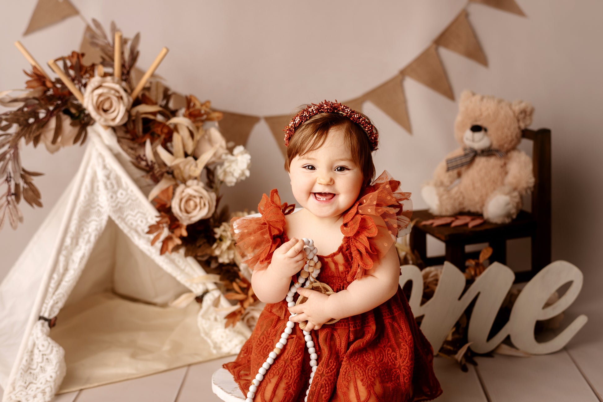 Descubra nuestro nuevo vestido en un encantador tono terracota, con encaje vintage que le aporta un toque caprichoso de encanto. Este elegante conjunto viene completo con un cubrepañal a juego, lo que garantiza estilo y practicidad para su pequeña.