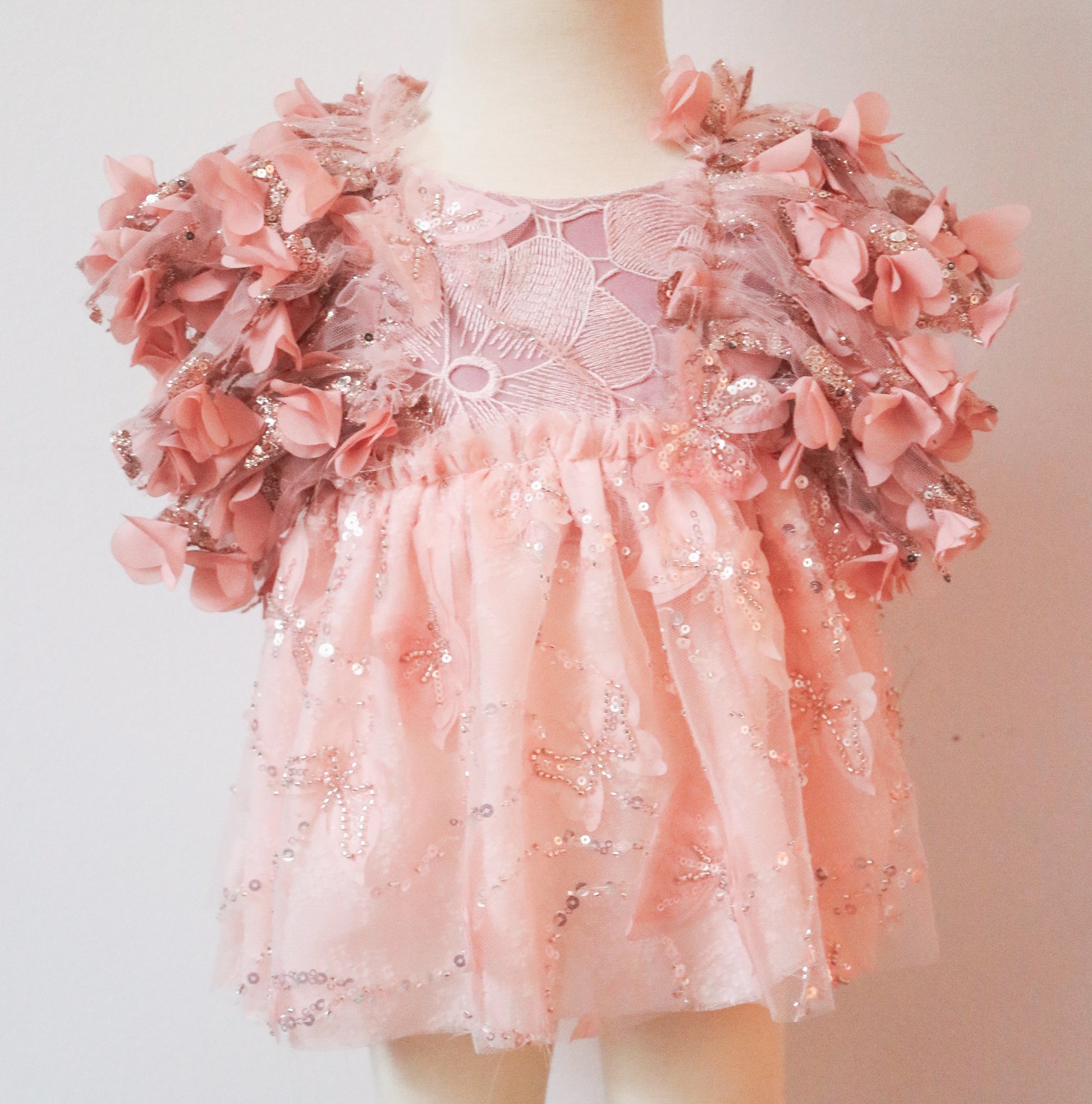 Pink Girl’s Dress Set with 3D Flower Petals and Butterflies – Girly and Fairy-Inspired