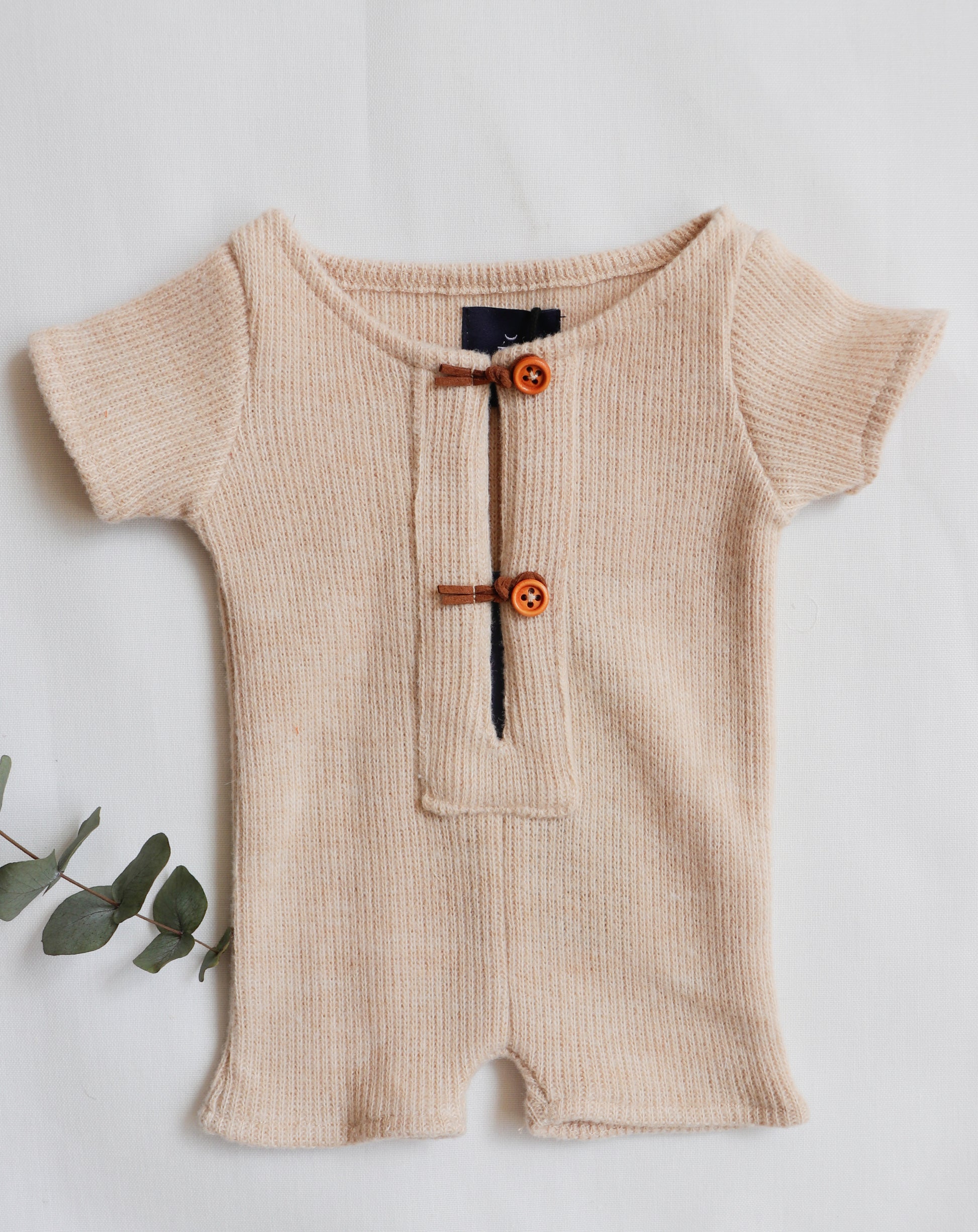 Discover our delightful wool newborn romper for boys, designed with both short sleeves and short legs or a longer leg style. Available in soothing sage pastel, classic beige, and vibrant mustard, this romper combines timeless charm with cozy comfort.