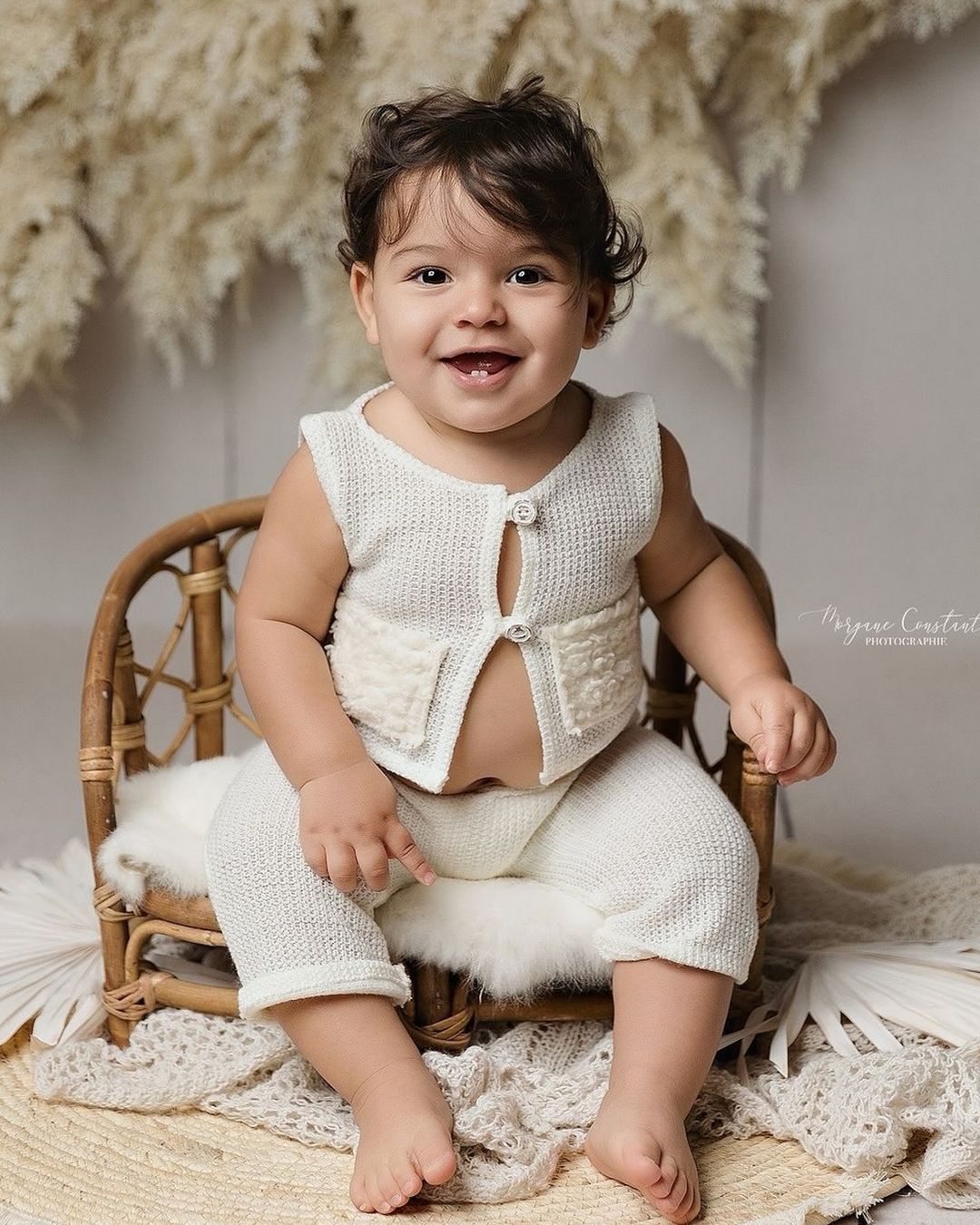 This boy’s outfit set is a perfect choice for parents looking to create timeless memories with a stylish and comfortable ensemble. Whether for a professional photoshoot or a special occasion, this outfit ensures your newborn stands out with charm and elegance.